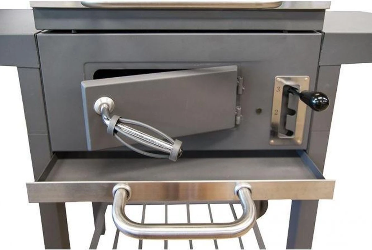 Met deze buitenkeuken van El Fuego slaagt elk barbecuefeest! Deze functionele barbecue onderscheidt zich van andere barbecues door de in hoogte verstelbare kolenbak. Hiermee verplaatst u de gloeiende briketten eenvoudig dichter of verder van de ingrediënten op het grilrooster. Ideaal voor als het ene gerecht op een hogere temperatuur gegrild moet worden dan het andere gerecht. Daarnaast heeft de Ottawa S een stevig onderstel en een aslade om de barbecue eenvoudig weer schoon te krijgen.